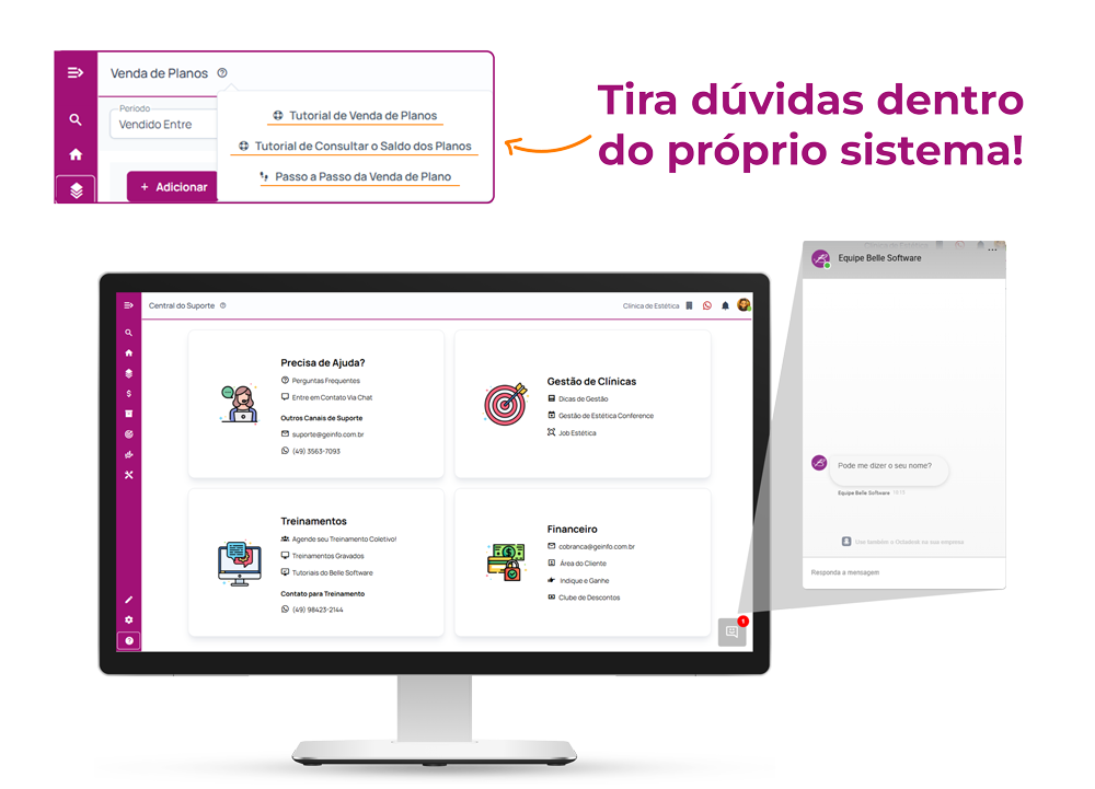 Base de conhecimento exclusiva com tutoriais e vídeos dentro do sistema.