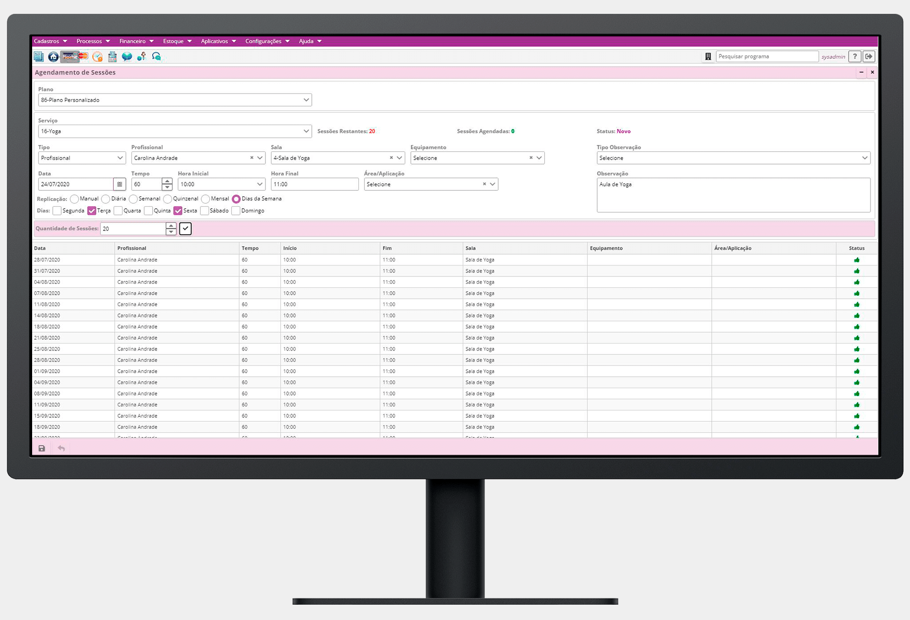 Realize os agendamentos das aulas, para vários alunos ao mesmo tempo.